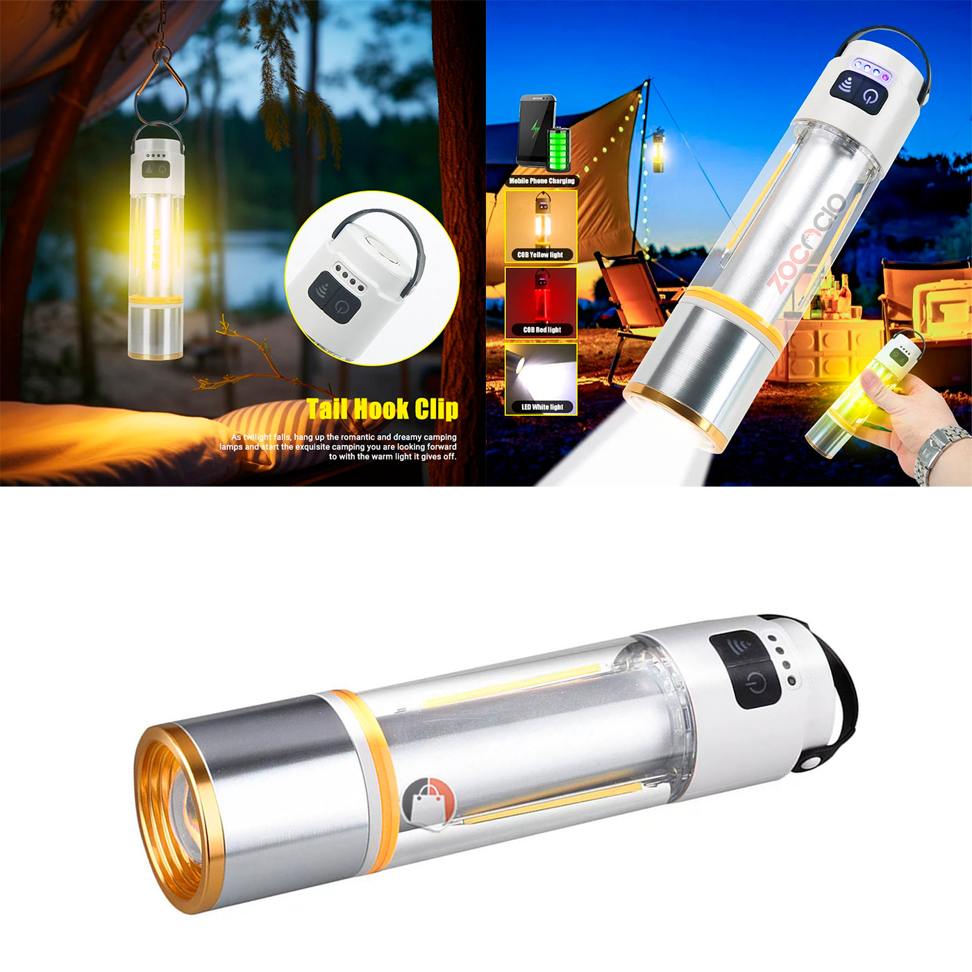 🪝 Gancho integrado: Cuelga la linterna fácilmente en carpas, mochilas o donde la necesites.