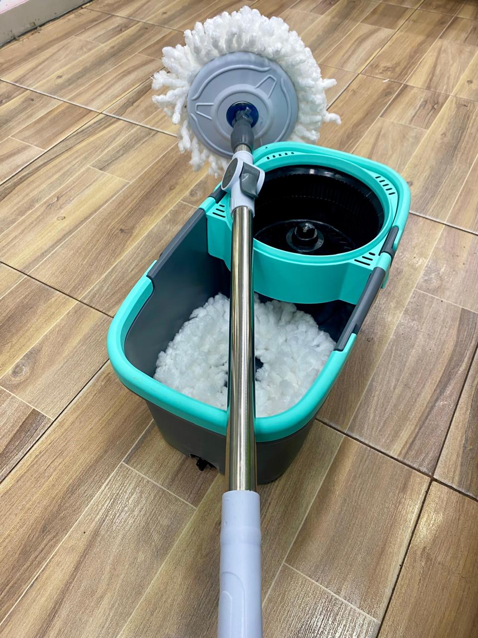 Este trapeador giratorio 360° es el aliado perfecto para el hogar, oficinas o negocios. Con su sistema rotativo, ruedas integradas y tapón de desagüe, facilita cada jornada de limpieza sin levantar peso ni ensuciarte.